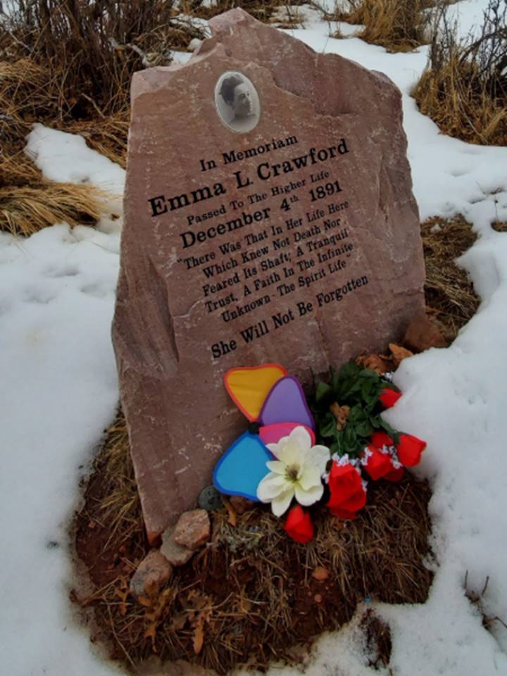 The legend goes, that Emma Crawford a 28-year-old that had relocated to the area due to having tuberculosis, passed away from the disease in 1891. Her final request was that she be buried on a mountain top, Red Mountain, just outside of town. Her wish was granted and her final resting place was Red Mountain.